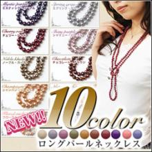 ベビーネックレスのお姉さんバージョンの10色ロングパールネックレス