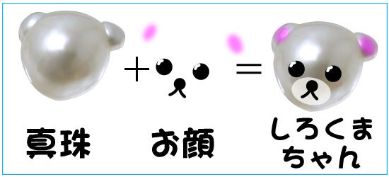 2011年7月1日 気になるルース(お珠)ちゃん! Tweet 真珠の珠をしわけしてるかおりさんから「きゃ~かわい~」って声が! なになに?なんだろうと思い覗き込んでみるとそこには耳のあるお珠ちゃん! う~んこれはみんなに伝えたい、そんな思いからこんなん作っちゃいました (丸い真珠じゃないのはバロックって言うんですって、ちなみにクマちゃんは南洋白 蝶真珠のバロックになるそうです) こんなん出来ちゃいました(笑) これはリラクマならぬ、シロクマちゃんではないですか! こんな可愛い真珠ペントップとかにしていつも着けておきたいですよね。 あと前にアップしていた「○○に真珠」も可愛いのでチェックしてみてくださいね。 みなみ