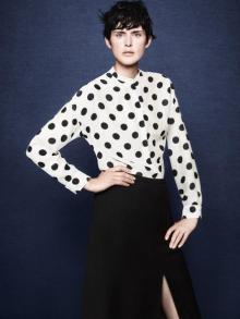 キャンペーンは、ドット柄ブラウス、スパンコールで装飾されたスカート、