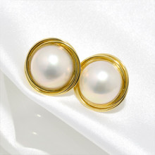 半円の形をした真珠のまわりをゴールドで縁取りした、上品なイヤリングです。
