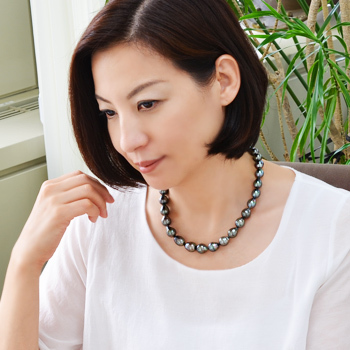 この時に着用しているタヒチ黒蝶真珠ネックレス!