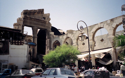 (巨大なスーク(市場)の入り口:古くはローマ時代の建築物や柱だそうです。)