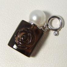 パールとスモーキークォーツで作られた香水瓶モチーフのチャームです。