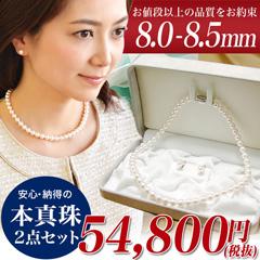 あこや真珠ネックレス2点セットホワイト系 8.0-8.5mm