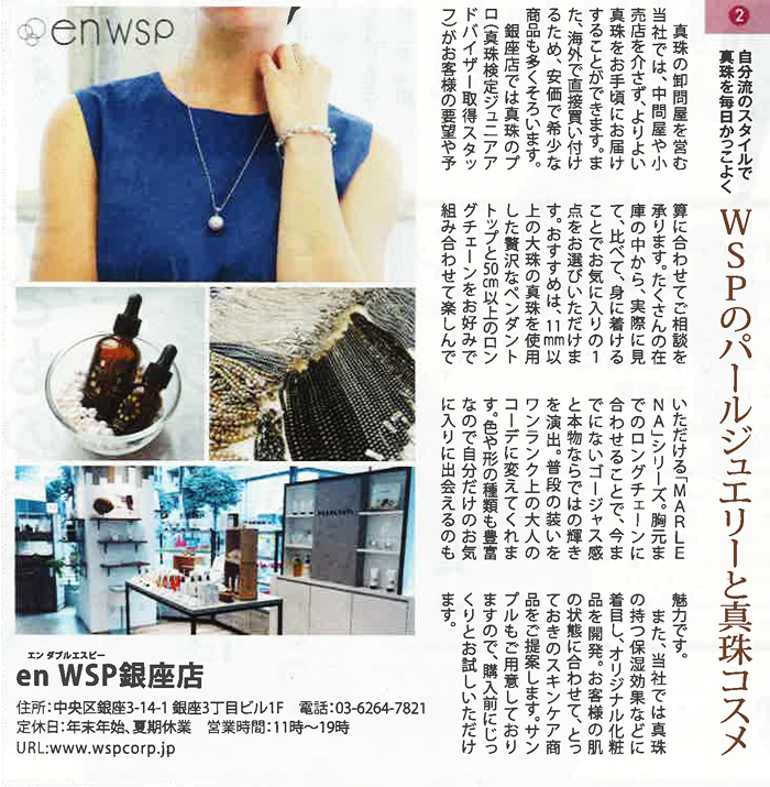 日経REVIVE2020 11月号「男の銀座散歩」にenwsp銀座店が掲載されました。 ■自分流のスタイルで真珠を毎日かっこよく WSPのパールジュエリーと真珠コスメ 日経REVIVE2020 11月号より